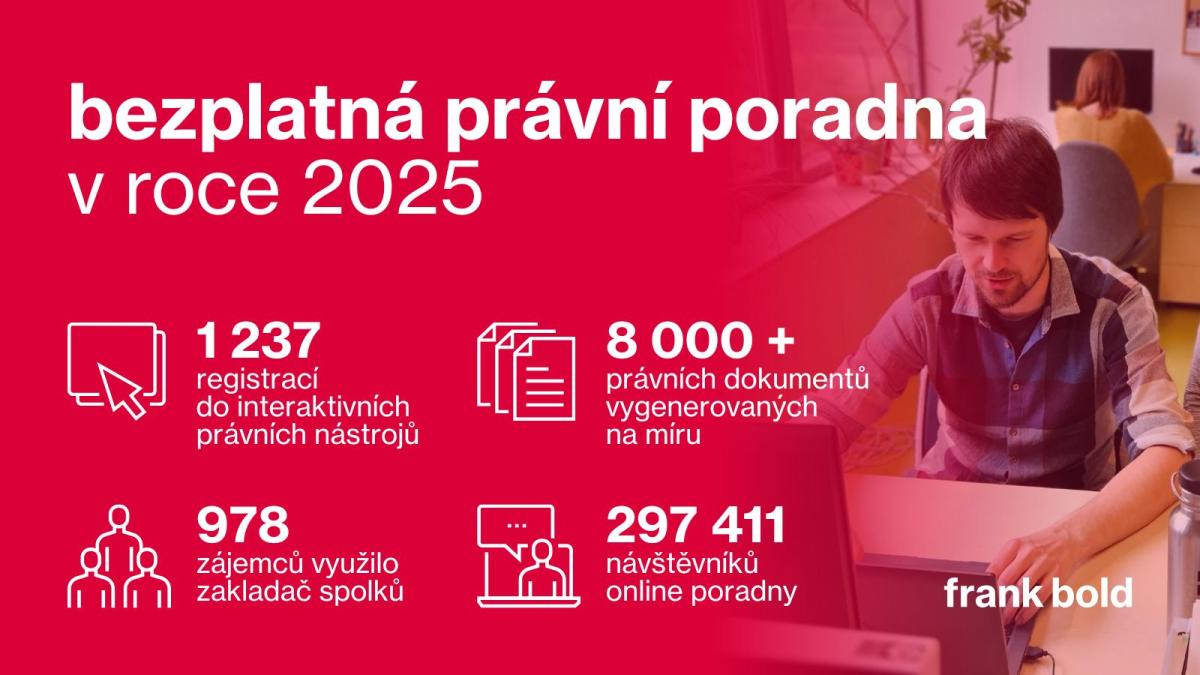 Také letos jste aktivně využívali naši bezplatnou právní poradnu. Navštívilo ji bezmála 300 tisíc lidí. Téměř tisícovka z Vás využila zakladač spolků. Vygenerovali jsme také víc než 8 tisíc právních dokumentů na míru.
