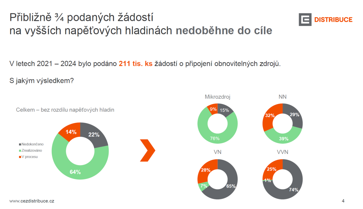 „Nejčastěji žádají investoři o prodloužení své žádosti kvůli projednávání majetkoprávních vztahů, neprůchodnosti kabelového vedení k přípojnému bodu, vyřizování stavebního povolení nebo úpravě svého záměru, například doplnění skladby zdrojů,” shrnul Ladislav Ráliš, ředitel úseku Obsluha zákazníků z ČEZ distribuce.