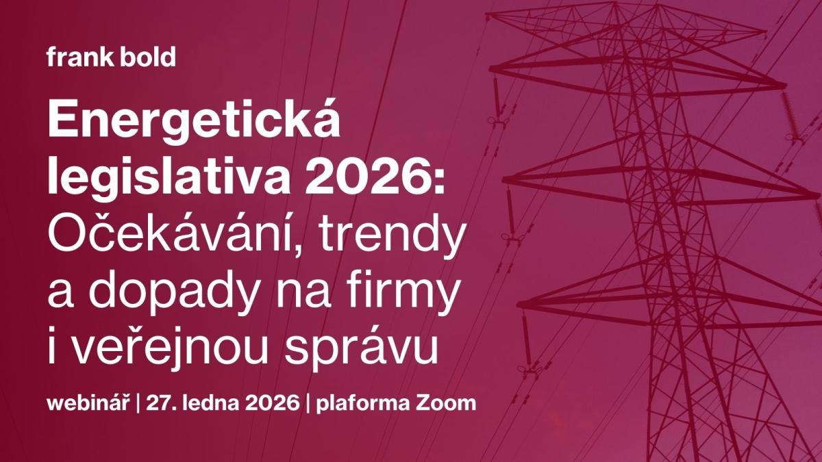 Přijměte pozvání na webinář expertní skupiny Frank Bold, který se uskuteční v úterý 27. ledna 2026 od 10.00 do 12.00. Přineseme přehled zásadních legislativních změn, které nás čekají v roce 2026 v oblasti energetiky.